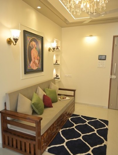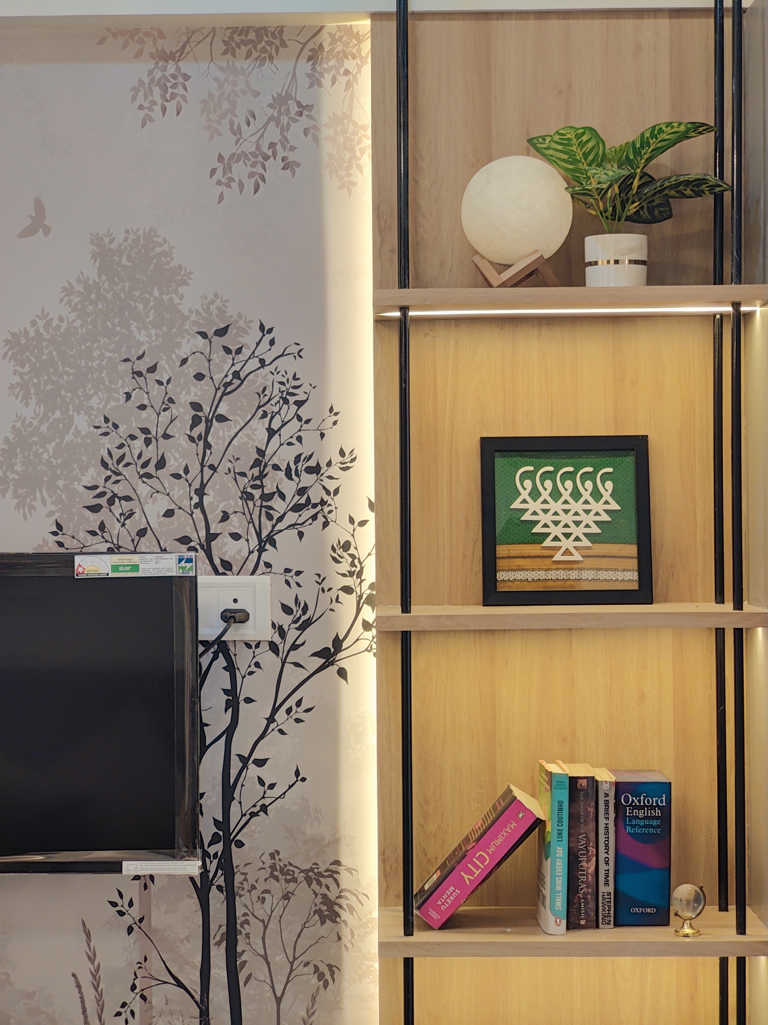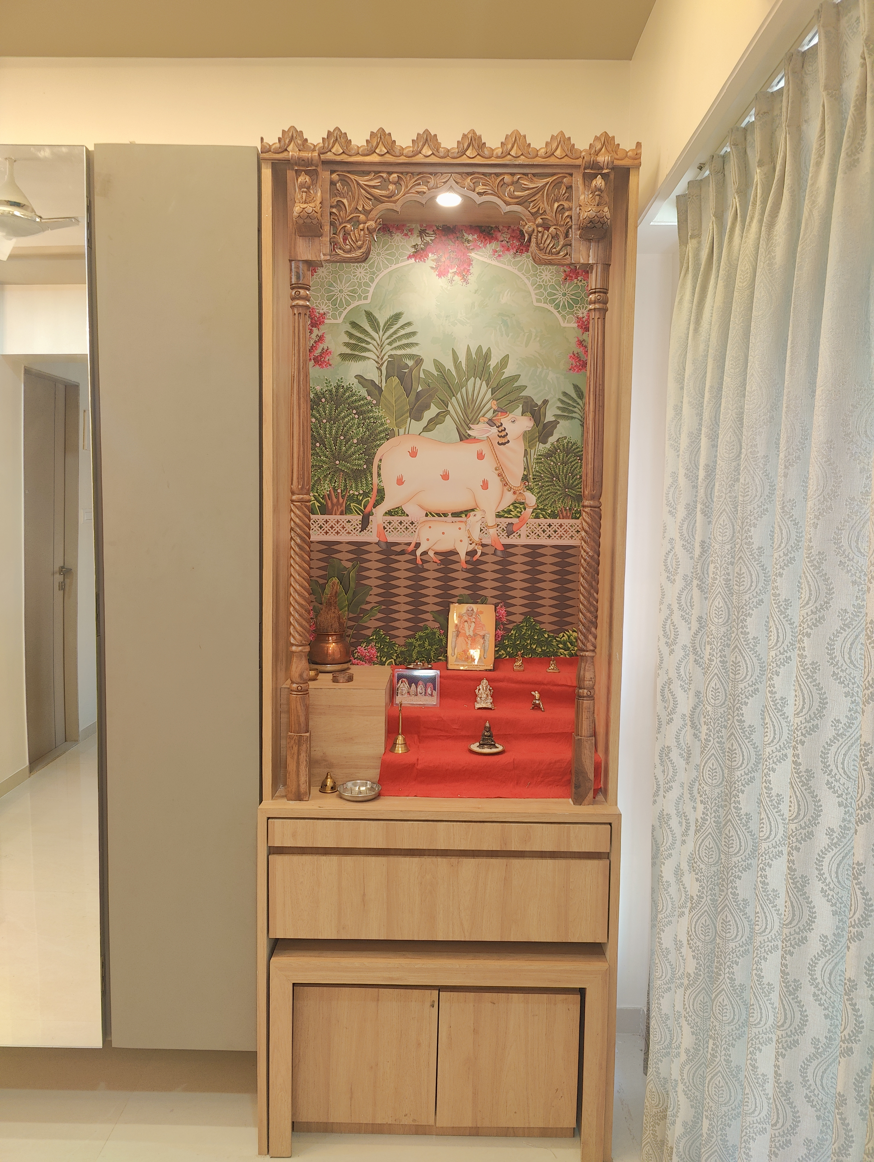 From the intricately designed mandir to the frame and curated display niches as a tribute to Chhatrapati Shivaji Maharaj, this design celebrates craftsmanship and client's personal expression and culture. Subtle patterns, earthy tones, and refined textures come together to create a timeless living environment that feels both grounded and sophisticated.