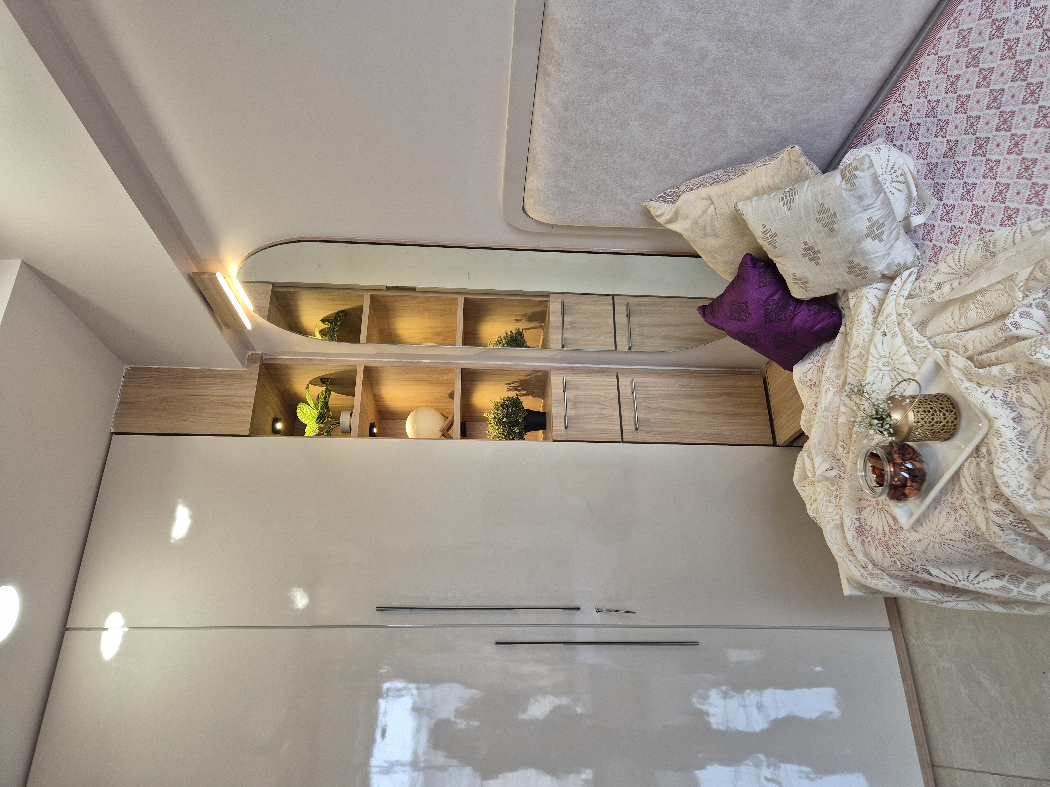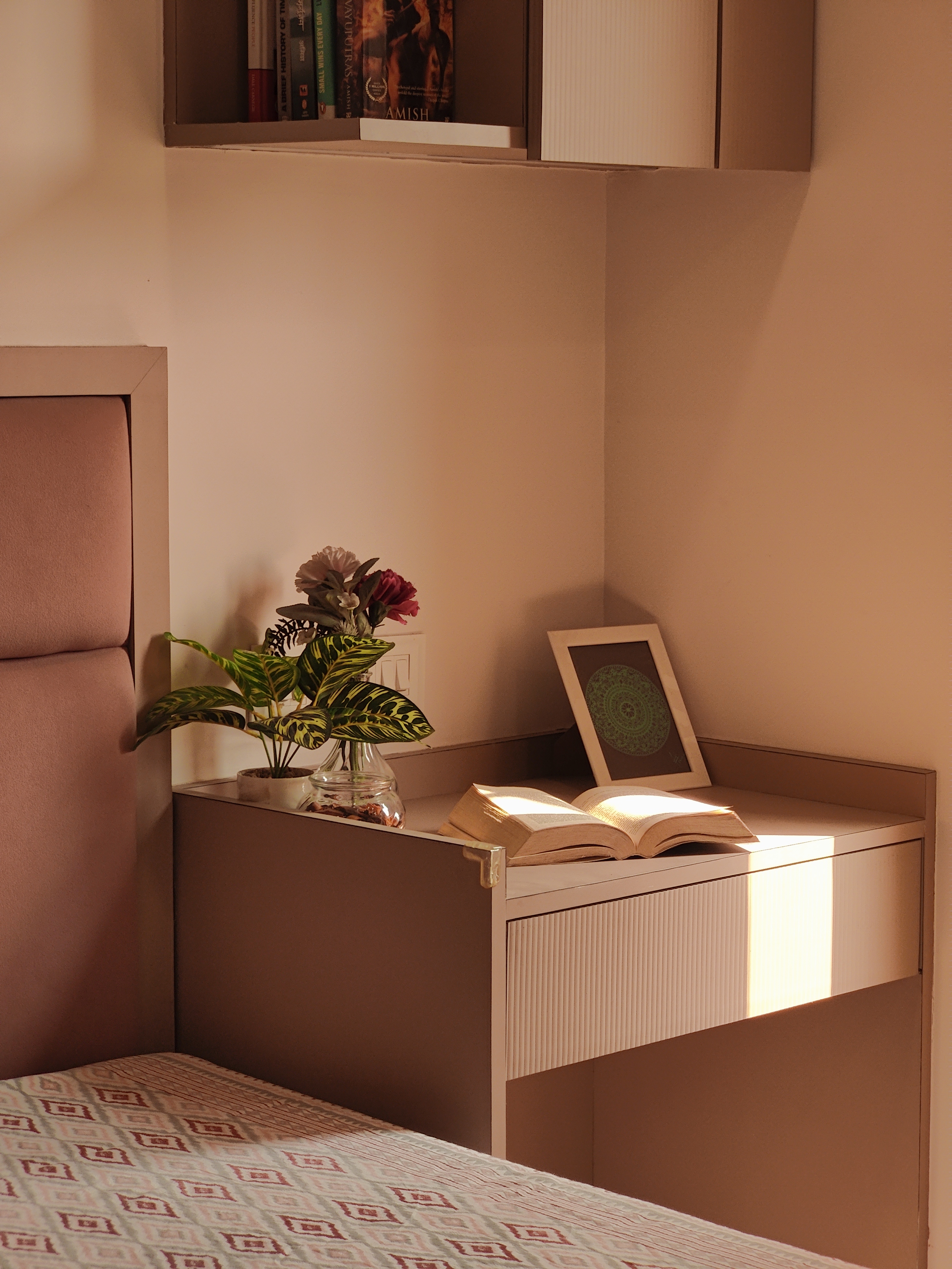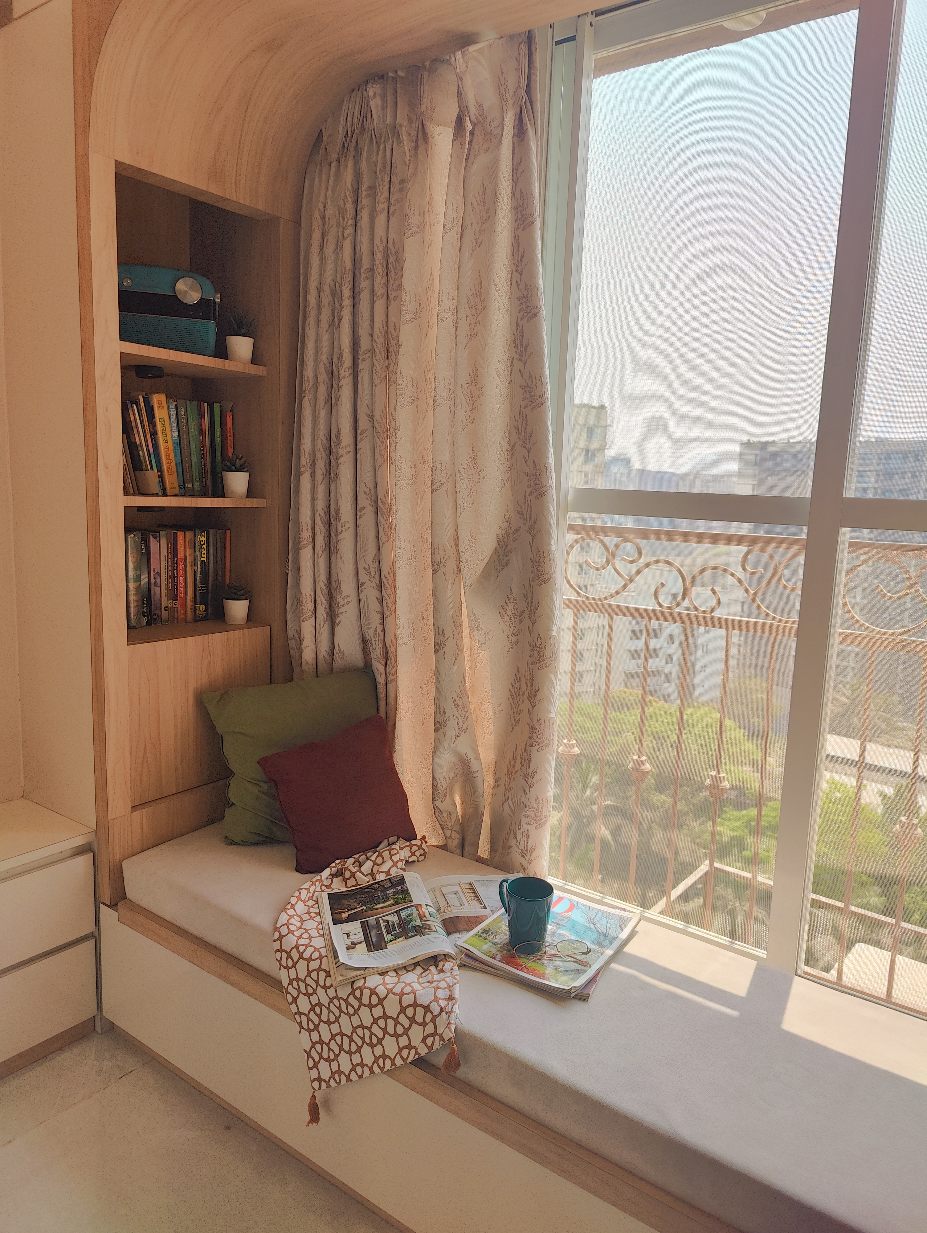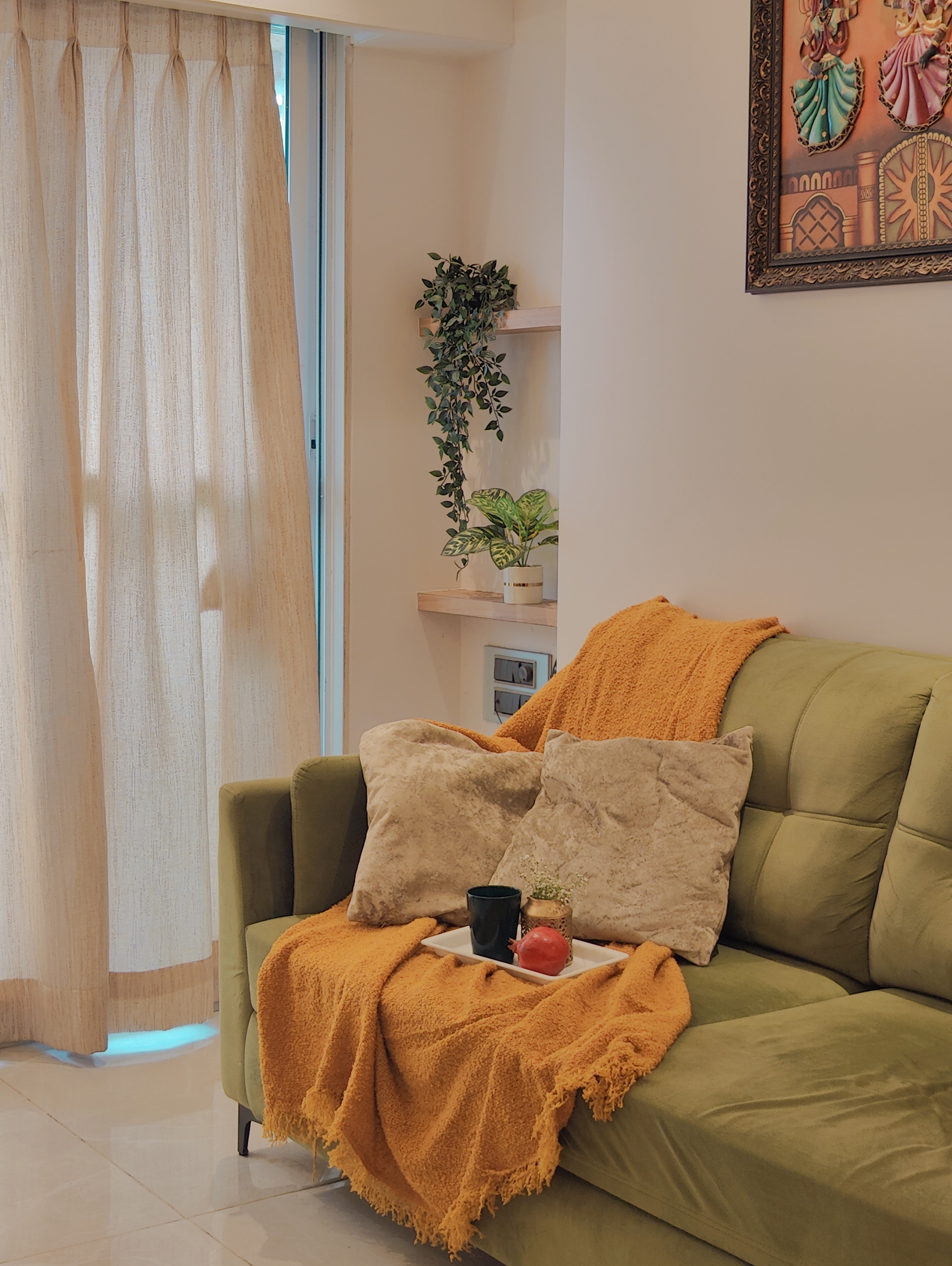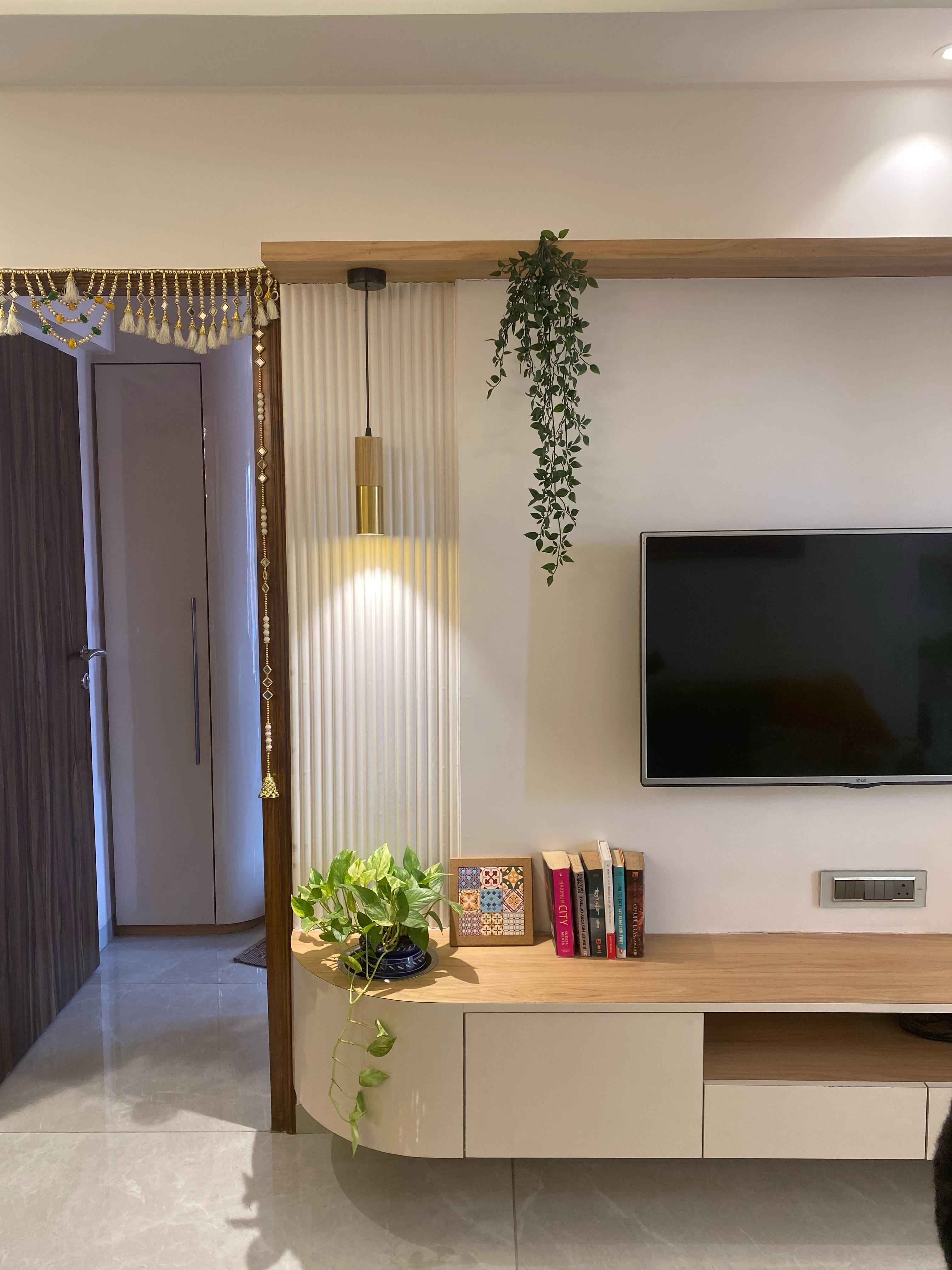This 2BHK designed for a client residing in Ghatkopar, reflects her personality which brings together warmth, light and a deep connection to nature within a compact urban setting. The design seamlessly integrates pockets of greenery across the home, softening the spatial experience while adding a sense of calm and vitality.