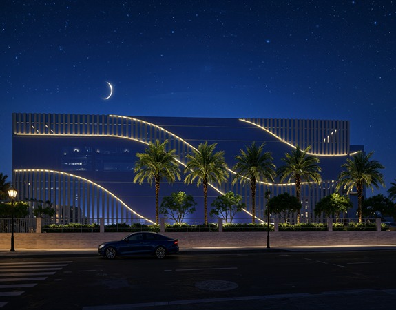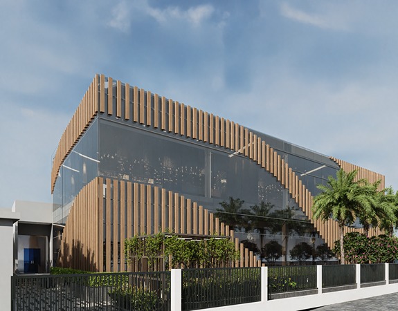 An architectural expression conceived as a landmark of identity and aspiration, the façade design for the NMDPL Experience Centre is defined by fluidity, precision, and contemporary elegance. Layered vertical fins and sweeping linear elements compose a dynamic skin that responds to light and perspective, creating a constantly evolving visual experience.